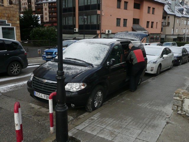 El día amaneció nevando y con una ventisca de narices, Baquiera 1500 y Bonaigua cerrados, así que subimos hasta Horri, y luego de un trompo espectacular esperamos en el aparcamiento y tambien cerrado.