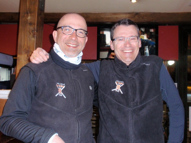 A media mañana, se nos unió Carlos, había ido a esquiar solo desde Vigo y al sentirnos "falar" nos pidió si se podía acoplar. Al final fué nuestro compañero el resto de los días y aunque al principio era calladito, acabó entrando en salsa y nos hizo muy buena compañía.